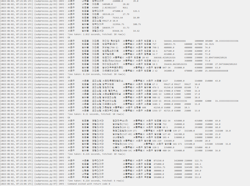 ์์ธ์ ์ด๋ฆฐ๋ฐ์ดํฐ ๊ด์ฅ์ '์์ธ์ ๋ถ๋์ฐ ์ค๊ฑฐ๋๊ฐ ์ ๋ณด' ๋ฐ์ดํฐ๋ฅผ ํ์ฉํ์ฌ ์์ด๊ตฌ ๋ด ์ค๊ฑฐ๋๊ฐ ์์ฝ ์ ๋ณด, ๊ฑด๋ฌผ๋ณ ์ ๋ณด๋ฅผ ์ถ์ถํ๋ pipeline์ ์์ฑ